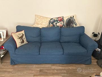 Vendo due divani 3 posti di cui uno con chaise lounge con pouf e cuscini. Inoltre includo altri due rivestimenti compelti.