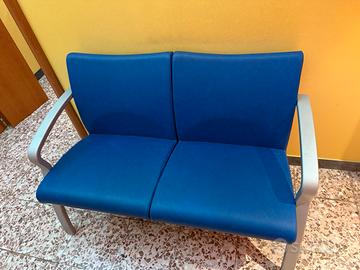 Due divani, uno di color rosso di di 1,50 m l’altro di color blu di 1 m ,quello rosso manca un piede sotto