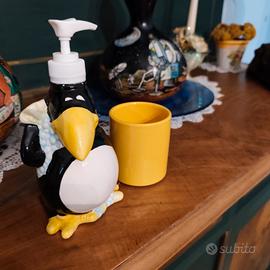 vendo due divertentissimi dosatori sapone da bagno con bicchiere porta spazzolini mai usati