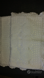 2 federe letto in cotone bianco. 1 lato lavorato a mano all' uncinetto. Nuovissime euro 30