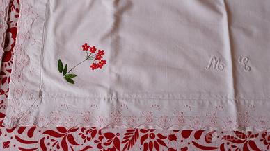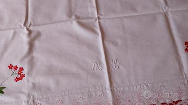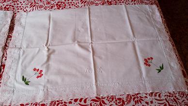 2 federe ricamate in cotone con fiori rossi e iniziali ME lunghezza cm 78,5 larghezza cm 50,5