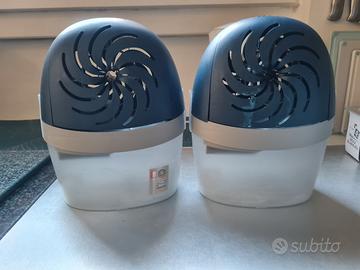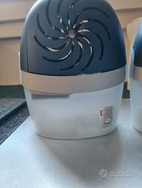 Vendo due kit assorbiumidità Aero 360 di Ariasana. Costituito dal 60% di plastica ricilata, attivo contro umidità e cattivi odori, adatto ad ambienti fino a 55 m3. Funziona senza corrente elettrica e ogni tab di ricarica dura fino a 3 mesi. Dotato di chiusura di sicurezza contro aperture involontarie, e di tappo di svuotamento per eliminarela soluzione salina. Prezzo nuovo euro 10 il singolo kit e 5 ogni tab. Vendo tutto ( 2 kit e 6 tab ancora in confezione integra) a 30 euro. Se si acquista un solo kit con 3 tab a euro 18.