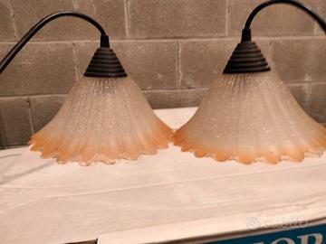 2 Lampadari bianchi e ocra opaline, diametro cm 25 Ritiro in loco se possibile Grazie mille
