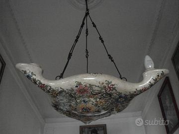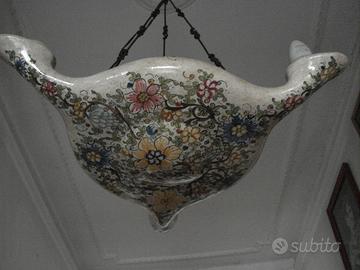 2 LAMPADARI IN VETRO COLORATO+2 LAMPADARI CERAMICA