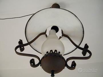 Due Lampadari di stile rustico 'vintage' retrò anni '60, in ferro-battuto a mano nero, made in Italy.