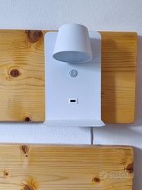 Vendo 2 lampade mod. BASKOP di Barcellona Led (B-LED) bianche, luce bianca calda, con interruttore on/off e presa Usb/Usb-C e piccola mensola.