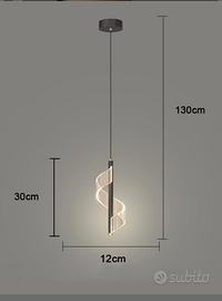 Vendo due lampade a sospensione LED design moderno nero e oro – luce calda.Eleganti lampade a sospensione con struttura nera e dettagli dorati, caratterizzate da elemento luminoso laterale a spirale molto scenografico. Ideali per cucina, isola, soggiorno, comodini o ambiente moderno. MAI UTILIZZATE ancora nello scatolo.