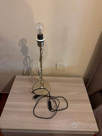 N. 2 lampade da tavolo, struttura elegante con elementi intrecciati, finitura color oro satinato. Ideale per comodino, soggiorno o studio. Caratteristiche tecniche: •Attacco lampadina E14 •Potenza massima: 40W •Alimentazione: 230V ~ 50Hz •Interruttore su cavo •Base stabile in metallo Condizioni: Buono stato generale, presenti normali segni d’uso. Perfettamente funzionante. Venduta senza paralume, pronta all’uso. Spedizione accurata o ritiro a mano. Disponibile per altre foto o info