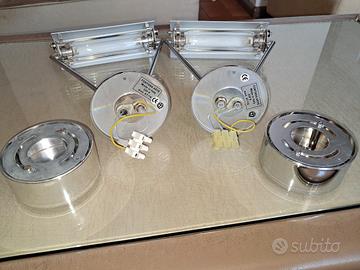 Dimensioni, larghezza 20cm, profondità 29 cm. Le lampade sono dotate di base per attacco a muro, senza le quali le lampade sono inutilizzabili. In ottimo stato, lampadine non comprese, si possono utilizzare lampadine