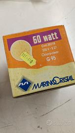 Introvabile lampadina globo trasparente diametro 95mm incandescenza 60w 220v E27 Nuova con la sua scatolina originale. il prezzo è per n.2 lampadine. Ultimi pezzi disponibili