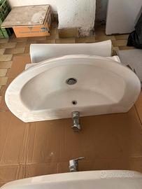 2 lavabo bagno con colonne e rubinetto miscelatore ottimo stato.