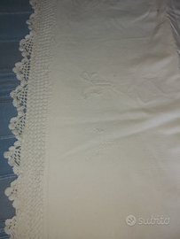 2 lenzuola pregiate con ricami e merletti uno bianco splendido pulito e stato l altro tipo canapa anche questo con ricami puliti e stirati ottime condizioni. Il prezzo è trattabile con la consegna in zona altrove previo pagamento spese di spedizione. Vendita con dicitura visto e piaciuto. Cadauno 40 euro.