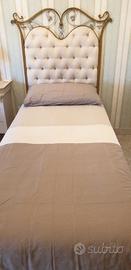 Letti a 1 piazza in foglia oro e argento. Imbottitura in alcantara panna. Reti con doghe in legno