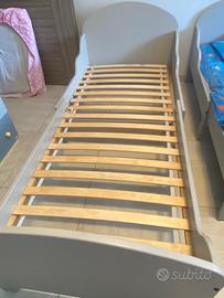 Vendo letti IKEA modello Trogen, colore grigio chiaro, in legno allungabili in tre misure, ideali per bambini in crescita (circa dai 3 ai 10 anni).