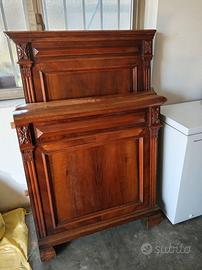 nr 1 letto matr. legno anni '50 testata/pedata/longheroni + rete 180x180