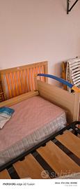 2 letti singoli con doghe in legno in ottime condizioni,con 2 spalliere di diverso colore ( per maschietto e femminuccia) azzurro e arancio.