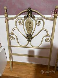 Vendo 2 letti singoli compresi di rete ortopedica e materasso. Letti colre beige con medaglione centrale in pietra.
