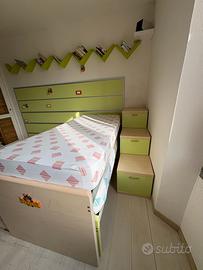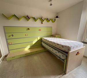 2 letti scorrevoli sovrapposti con boiserie, 3 cassettoni e 4 cassetti.