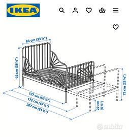 Lettini Ikea Minnen in metallo bianco comprensivi di materasso allungabile.