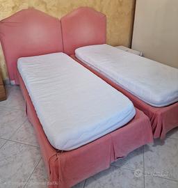 Vendo 2 lettini singoli con testiera imbottita rosa. Sfoderabili e lavabili Materassi inclusi Buone condizioni, pronti all’uso Ideali per cameretta o casa vacanze. Vendibili anche separatamente
