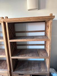 Nota: le librerie sono realizzate interamente in legno massello e dispongono di 3 ripiani e 4 cassetti. L'unica differenza tra le due librerie sono le maniglie dei cassetti. Possono essere vendute anche singolarmente (500 € al pezzo)