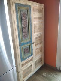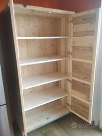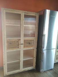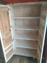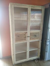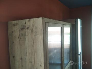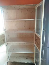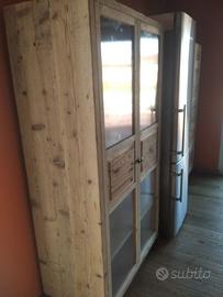 02 librerie costruite in massello di abete vecchio recuperato da trave e parancole da muratore spazzolato e carteggiato con misura lungh. 100 prof. 50 h 190, predisposte sotto con telaio piedini tubolare in ferro h 10 cm da 2 x 2 su cui verrà fissata la libreria con fianchi chiusi lateralmente in pattina verticali da 4 cm di spessore su cui verrà fissata idonea ferramenta per relativi ripiani in abete massello da 24 mm (4 ripiani previsti) frontalmente troveremo spalle telaio in abete vecchio (da 4 cm di larghezza) con relativi traversi di giunzione con incastro posteriore per fissare relativo vetro con effetto rigato e pannello in abete vecchio diamantato su cerniere ammortizzate in chiusura regolabili e pomello per apertura, altra libreria uguale ma con inserimento nel ns telaio della vs porta del cliente riadattato, con pannelli tutti chiusi in abete vecchio spazzolato bugnato, tutto al grezzo. le librerie sono già state costruite su commissione ed esigenze del cliente, non sono disponibili a magazzino ma essendo i diretti produttori falegnami possiamo riprodurle uguali o in base alle proprie esigenze. per domande o dubbi contattateci P.S. disponibili a dare suggerimenti o chiarimenti in merito, per noi conta dare vita al vostro sogno DIRETTAMENTE DAL PRODUTTORE ASTENERSI RIVENDITORI O COMMERCIANTI