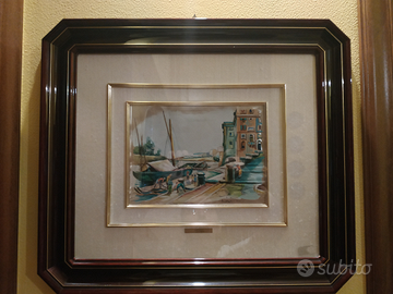 Set 2 Litografie su lastra d'argento, serie Roma sparita - "Via delle Asinelle in ghetto" (primo quadro); " Porto Ripetta" (secondo quadro). Misure (comprensive di cornice in legno laccato con vetro): 45x51.