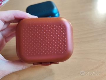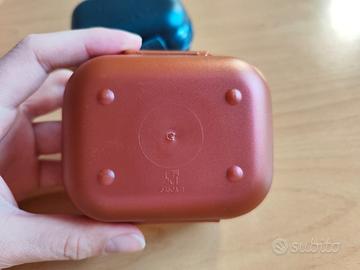 Usate poco per riporre alcuni oggetti, alcuni segni esterni, lavate, colore blu scuro e rosa scuro/bronzo, adatte per alimenti o oggetti, nate come porta sapone, 9,5x5x7,5cm, perfettamente funzionanti