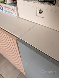 Mobili Ikea Besta 2 moduli: - modulo blocco singolo cassetto e anta legno rosa 60x40x74 con gambe in metallo - modulo blocco triplo 3 cassetti e 3 ante grigio azzurro lucido 120x40x74 con gambe in metallo Mobili in ottime condizioni. In regalo altre ante grigio/azzurro e legno rosa per cassetti. Vendesi per cambio mobili.