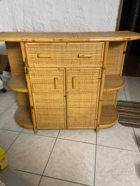 2 mobiletti in vimini, con portina, cassetti e ripiani laterali.