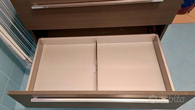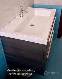 Vendo 2 mobili bagno in stile moderno, colore antracite effetto legno, completi di lavabo e rubinetteria. **Composizione:** * **Mobile 1:** completo di lavabo, rubinetteria Ponsi e specchiera – in ottime condizioni * **Mobile 2:** completo di lavabo e rubinetteria – già smontato, presenta piccoli segni **Dimensioni (per ciascun mobile):** * 90 x 51 cm (profondità 53,5 cm) * Specchiera: 94 x 66 cm **Caratteristiche:** * Design moderno ed elegante * Rubinetteria Ponsi inclusa * Colore antracite effetto legno **Prezzi:** * **Entrambi: 240€ trattabili** * **Mobile completo con specchiera: 160€** * **Mobile già smontato 70€** Ritiro a mano in zona San Mariano (Perugia). Smontaggio e trasporto a carico dell’acquirente. Per info o altre foto contattami.