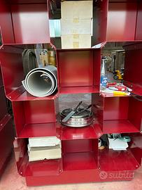 Libreria in acciaio smaltato color rosso / bordeaux come da foto su ruote, ideale come divisorio in open space
