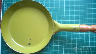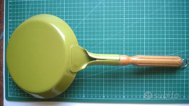 2 Padelle smaltate manico in legno