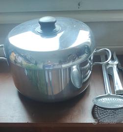 vendo pentola grande e bassa in acciaio adatta per marmellata e conserva ,tante verdure. maxi . spaghettate manici in acciaio. coperchio bombato Ballarini con sfiato