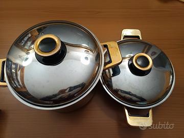 pentole con coperchio in acciaio inox mai usate rimaste impilate nell'armadio