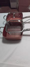 2 PENTOLE ANTIADERENTI PER FRITTURA + 1 COPERCHIO + 1 CESTELLO - MIS. CM 24X24