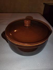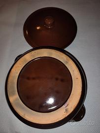 2 pezzi :Tegame e pentola bombata alta in terracotta, entrambe con coperchio