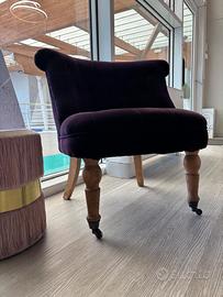 Vendo 2 poltrone eleganti color viola melanzana Vendo due bellissime poltrone imbottite, comode ed eleganti, perfette per arredare soggiorno, studio o camera da letto. Il design raffinato è valorizzato dai piedini in legno con pratiche rotelle, che le rendono anche facili da spostare. Caratteristiche: Colore: viola melanzana Struttura solida con piedini in legno e rotelle Seduta ampia e confortevole Misure: Altezza: 70 cm Larghezza seduta: 57 cm Profondità seduta: 48 cm 📍 Ritiro a Bonate Sotto a carico dell’acquirente. 💰 Il prezzo è da intendersi per entrambe le poltrone, ma sono vendibili anche separatamente. 🤝 Prezzo trattabile, accetto offerte.
