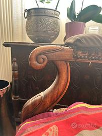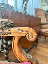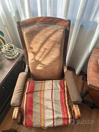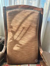 Vendo eleganti poltrone d’epoca, realizzate in legno massello con schienale alto imbottito e rifinite con chiodini decorativi originali dell’epoca.