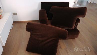 Due poltrone di B&B modernariato Anni '73/'74 di Casarredo (Fano). Rivestimento in velluto Colore marrone scuro Cuscino di seduta e spalliera estraibili Misure: Altezza cm 64 Larghezza cm 93 Profondità cm 93 Ottimo stato di conservazione. Le due poltrone sono da ritirare sul posto a Pesaro.