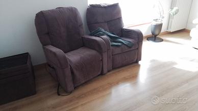 Le poltrone sono coloro viola scuro e in ottime condizioni, sono state utilizzate pochissimo. Si stendono da poterci dormire sopra, i miei bimbi ci dormivano sopra wuando venivamo a trovare la nonna.
