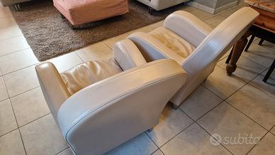 Coppia di Poltrone Frau originali di cui una in ottimo stato e la seconda necessità di riparazione alla ruota sottostante.Prezzo €.500.Trasporto a carico dell'acquirente.