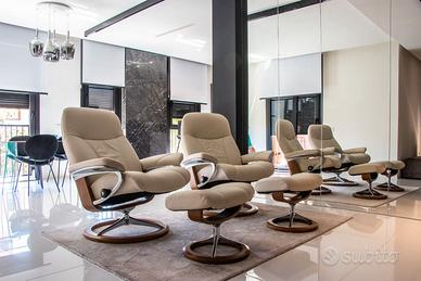 Vendo 2 poltrone relax/reclinabili Stressless modello Consul Signature, misura LARGE, rivestite in pelle Paloma con poufs. Sono praticamente nuove, usate pochissimo e sempre tenute con grande cura. Pagate nuove - Euro 4200.