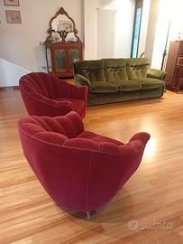 2 poltrone salotto in velluto rosso e legno. €600 trattabili