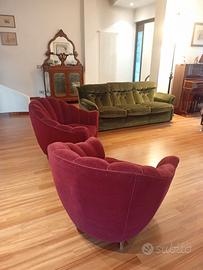 2 poltrone velluto e legno