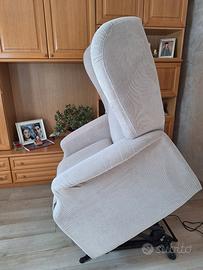 poltrona vivere 2 motori con molle a spinta costante + memory , roller system con 4 ruote piccole, tessuto Savoy beige più copripoltrona.