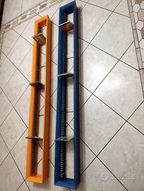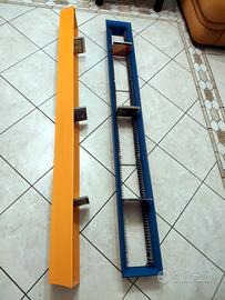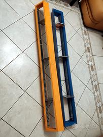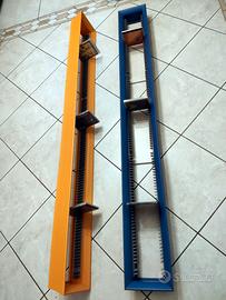 2 splendidi porta Cd di design in mdf colorato (arancio e azzurro come da foto), identici nella forma, contenenti 116 cd standard cadauno (232 in tutto se nel formato standard, ma potrebbero contenerne più del doppio de si trattasse di cd con jewel case "slim"). Installazione "a muro". Dimensioni: cm.162 altezza, cm.19 larghezza, cm.10 profondità. Ottime condizioni. Considerate le dimenzioni, suggerisco ritiro a mano, ma, se richiesto, discuterei soluzioni idonee di spedizione.