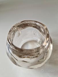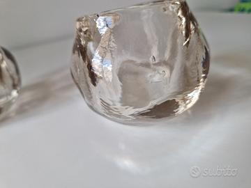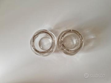 Bellissimi portacandele in vetro trasparente, perfetti per creare un'atmosfera accogliente. Sono due pezzi, dalla forma leggermente irregolare e bombata. Ideali per candele piccole o medie. Ottime condizioni.