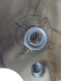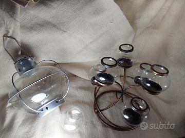 vendo 2 portalumini,uno in ferro opaco tipo alluminio e vetro soffiato a palla per candele palla,cilindro o lumino da appendere o da appoggio h.20 cm larghezza 20cm diametro ferro esterno, l'altro in ferro o rame anticato a spirale per 6 lumini o candele a pallina o cilindro piccolo completo di 7 vetri in vetro soffiato a sfera da incastrare,uno di scorta con 6 dischi di metallo uguale al portalumini da appoggiare sopra ai vetri come finitura. h.22 cm. comprensivo dei vetri,largh.26 cm.Nuovi mai usati il primo è adatto anche ad illuminare in esterno. visibili a Modena.