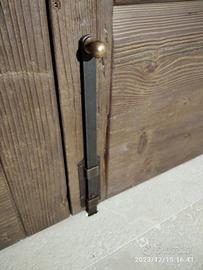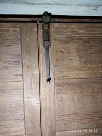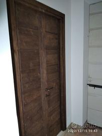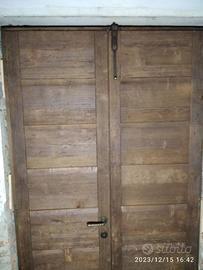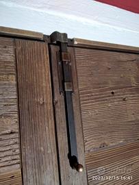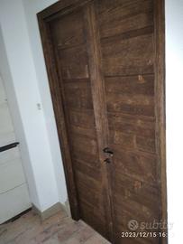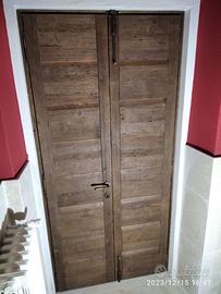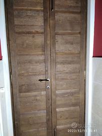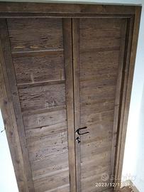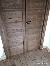 costruzione di 2 porte doppie (una per il bagno e altra per ripostiglio) in legno di abete vecchio recuperato da trave, spazzolato carteggiato e morbido al tatto a 3 strati (interno multistrato esterno cartelle in legno di abete vecchio in modo che con il tempo restino dritte e bilanciate, con misure circa lungh. 111/115 h 212 prof. circa 12 cm CON RELATIVA maestà e relative mostrine dritte in pattina. costruita come vs porta (esistente e da riprodurre uguale) con tavole frontali orizzontali parte anteriore con spalle verticali e bugnatura spizzatura a incastro uno con altro, completo di cerniere vecchie da mobili zancate patinate, con maniglia vecchia (similare alle altre porte precedenti) serratura con chiave, guarnizione e scrocco fermaporta posteriore in ferro vecchio superiore e inferiore. Completo di finitura tintata noce scuro (come le altre porte già esistenti). Compreso finitura Iva non comprendente, costruito su commissione, non disponibile a magazzino ma possiamo riprodurlo DIRETTAMENTE DAL PRODUTTORE ASTENERSI RIVENDITORI O COMMERCIANTI